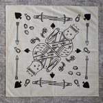100% cotton bandana, approx 22"x22" in size. This cotton material contains some flecks as it is unbleached and keeps a more natural look and feel.